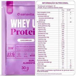 Whey Up 3w Chocobelga - 20 Saches de 30g - Sanavita whey Up 3w Chocobelga - 20 Saches de 30g - Sanavita Whey Up é um suplemento proteico à base de três proteínas do soro de leite, que se complementam para oferecer mais nutrição no dia a dia e performance nos treinos. Sua fórmula foi pensada para trazer a melhor combinação entre o whey protein concentrado, isolado e hidrolisado, apresentando em cada dose, 22g de proteínas de alto valor biológico, com excelente conteúdo de aminoácidos essenciais, entre eles os BCAAs - leucina, isoleucina e valina 5g/dose . É enriquecido com cálcio e vitamina d. - Combinação perfeita entre whey protein isolado, concentrado e hidrolisado. - 22g proteínas de alto valor biológico/dose. - 5g de BCAAs/dose. - Contém naturalmente peptídeos como: glicomacropeptídeos GMPs , alfa-lactoalbumina, imunoglobulinas e lactoferrina. - Enriquecido com cálcio e vitamina d. - Zero Glúten. - Low carb. - Baixo índice glicêmico. - Sem aromas, corantes e adoçantes artificiais. Modo de consumo: Adicione 1 sachê do produto, em seguida, acrescente 150mL de água ou bebida de preferência e mexa até completa dissolução. Se preferir, utilize coqueteleira ou mixer. Consuma imediatamente após o preparo. Recomendamos o consumo de 1 porção ao dia, após o treino. Em dias sem treino pode ser consumido no horário de maior conveniência. Advertências: ESTE produto não é um ESTE produto é um suplemento ALIMENTAR MANTENHA fora do alcance de CRIANÇAS NÃO exceder A recomendação diária de consumo indicada na EMBALAGEM Registro no m. S. Nº Produto dispensado de registro rdc 240 de 2018 Marca: Não Informado Ean: 7898132545215