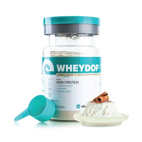 Wheydop 3w (900g) Arroz Doce- Elemento PuroWheydop 3W é um suplemento proteico para atletas que não abrem mão do sabor, muito menos dos benefícios do puro whey protein. Em uma combinação de aromas incríveis com as melhores proteínas do soro do leite (WPC, WPI e WPH) sendo a concentrada uma proteína não desnaturada, ou seja, extraída sem processos térmicos. Criamos um whey protein que surpreende no sabor e com uma porcentagem mínima de carboidratos e gorduras. Wheydop 3W pode ser consumido frio ou quente. Uma ótima opção de proteína para qualquer hora do seu dia.Sugestão de usoAdicione uma dose de 27 g (1 scoop) em 140 a 180 ml de água ou bebida de sua preferência e agite bem. Consumir preferencialmente 30 minutos antes e/ou após atividade física ou conforme orientação de médico ou nutricionista.IngredientesProteína concentrada do soro do leite não desnaturada (WPC), proteína isolada do soro do leite (WPI), proteína hidrolisada do soro do leite (WPH), aromatizante idêntico ao natural, espessante goma xantana, especiarias, edulcorantes sucralose e acessulfame de potássio.Não contém glúten Alérgicos contém derivados de leite e soja.Este produto é dispensado de registro na Anvisa de acordo com a RDC número 27 de 2010.