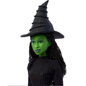 Inclui 1 boneca fashion Elphaba cantora com vestido, chapéu e sapatos removíveis.