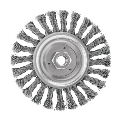 DEWALT Roda de arame, 15 cm, torção completa do cabo, aço carbono, mandril de 11 mm (5/20.3 cm) (DW4937) - O fio de aço inoxidável ou carbono tratado termicamente oferece ação de escovação agressiva de longa duração para a roda de arame - A estrutura interna da placa de retenção oferece movimento reduzido do nó e maior controle e vida útil da escova - Construído com placa de fixação interna para garantir consistência e segurança