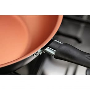 Característica-2 - PRO-FLON: A tecnologia antiaderente Pro-flon da Panela Wok 26 cm Topázio não deixa o alimento grudar, permite a redução do uso de óleo para cozinhar e facilita a limpeza. Além disso, é livre de metais pesados e elementos prejudiciais à saúde (PFOA free), com classificação A (ótima) no Inmetro. É mais saúde e segurança para sua família.