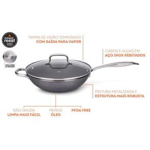 01 Wok Com Tampa Alça e Cabo - Diâmetro: 28 cm | Altura: 8 cm | Capacidade: 3 L