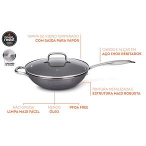 A Wok Antiaderente Ceramic Life Unique 3L Da Brinox vai deixar suas receitas ainda mais especiais. Perfeita para cozinhar molhos e carnes por igual e sem queimar, ela possui a robustez que agiliza o cozimento dos ingredientes, consumindo menos energia. A nova geração de antiaderente Mineral Resist com partículas de cerâmica é resistente ao uso em altas temperaturas. Livre de metais pesados e elementos químicos prejudiciais à saúde, exige menos uso de óleo nas refeições, não deixando os alimentos grudarem facilitando a limpeza e consumindo menos energia. Tudo para deixar sua alimentação saudável e prática. Cheia de estilo, o cabo e alça são em aço inox rebitado, mais resistentes, sua pintura externa é metálica na cor cinza, traz um toque de design a sua cozinha. Prática, ela é de fácil limpeza, possui tampa de vidro temperado com saída para o vapor para você acompanhar o preparo dos alimentos. Cuidados - Não vai ao micro-ondas - Não vai à lava-louça - Pode ser utilizada em fogões de indução - Pode ir ao forno sem a tampa Ficha Técnica Marca: Brinox Cor: Cinza Material: Alumínio Linha: Ceramic Life Unique Diâmetro: 25cm Capacidade: 3 Litros Altura: 8cm Espessura: 5.0 mm Certificação: Classificação A ótima Registro-003771/2020 OCP-Falcão Bauer Peso: 2,05 Kg : 90 dias para vícios e defeitos de fabricação Conteúdo Da Embalagem: 01 Wok Com Tampa Alça e Cabo - Diâmetro: 28 cm | Altura: 8 cm | Capacidade: 3 L Sobre a Brinox No mercado desde 1988, a Brinox é uma das maiores marcas de utilidades domésticas do Brasil. Atualmente, conta com mais de 2.500 produtos em seu portfólio, como panelas, talheres, lixeiras, utensílios e utilidades em geral. São itens de aço inox, alumínio, aço cromado, silicone, nylon, entre outros materiais, que estão distribuídos por todos os ambientes da casa. Com a beleza prática da Brinox, os ambientes tornam-se cenário de experiências memoráveis, pois permitem que todos tenham mais tempo para aproveitar a vida junto da família e dos amigos.