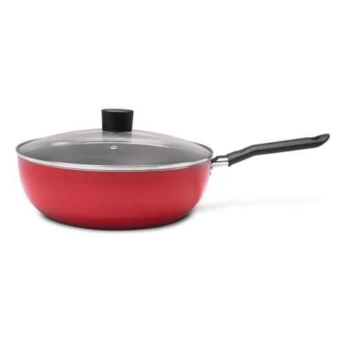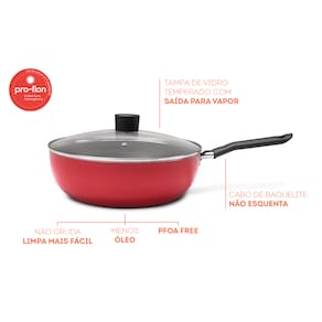 Prática e segura, a Wok da linha Garlic, com 28 cm e capacidade de 4,1 litros, tem estrutura de alumínio que dissipa melhor o calor, cozinhando o alimento por igual e mais rapidamente. Já o revestimento interno antiaderente não deixa o alimento grudar mesmo com uso reduzido de óleo. De quebra, o material também facilita a limpeza. A tampa é de vidro temperado e possui saída para o vapor. Com cabo de baquelite, material que não aquece, o manuseio da panela, fica mais fácil e seguro. A pintura externa é na cor grafite e vermelha. O ciclo de vida do produto pode variar conforme frequência e intensidade da utilização. O produto deve ser descartado (livre de materiais orgânicos) em coletores de resíduos seletivos. A logística reversa não é aplicável.