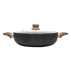 - Dimensões da Peça: Ø28 x 43 x 7,8 cm - Material: Alumínio com revestimento cerâmico - Cabo soft touch - Cor: Preto com pintinhas branca - Espessura: 4.5mm - Tipo de Embalagem: Saco plástico - Uso indicado em: Fogão convencional, Fogão elétrico e Fogão de indução - Marca: Wolff