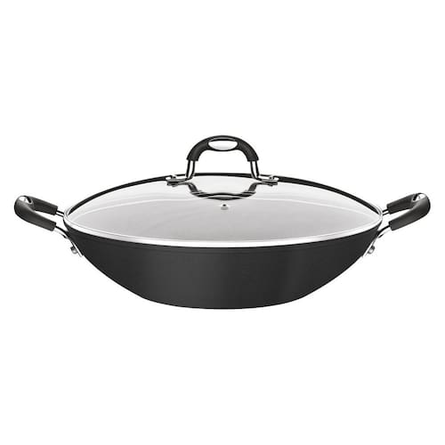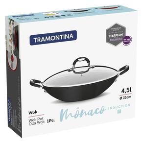 Preparar refeições especiais para toda a sua família ficou ainda mais prático e funcional com a wok Tramontina Mônaco Induction em alumínio com revestimento interno e externo antiaderente Starflon Premium preto com tampa de vidro 32 centímetros de diâmetro 4,5 litros!
