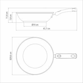 - **Referência**: 62138288 - **Diâmetro**: 28 cm - **Material**: Aço inox - **Fundo**: Triplo (aço inox + alumínio + aço inox) - **Capacidade**: 3,3 litros - **Altura**: 11,4 cm - **Largura**: 29,6 cm - **Comprimento**: 47,7 cm - **Peso**: 0,94 kg - **Revestimento**: Starflon Premium (antiaderente)