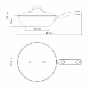 - **Modelo:** Wok Tramontina Astro Silicone - **Código SKU:** 62138280 - **Material:** Aço Inoxidável - **Diâmetro:** 28 cm - **Capacidade:** 3,3 L - **Peso:** 1,7 kg - **Altura:** 15,2 cm - **Largura:** 29,6 cm - **Comprimento:** 47,7 cm - **Revestimento:** Silicone antitérmico nas alças - **Tipo de Tampa:** Vidro - **Fundo:** Triplo (aço inox + alumínio + aço inox) - **Compatibilidade:** Gás, elétrico, vitrocerâmico, indução - **Garantia:** 90 dias - **Certificação:** OCP 0104- PCN DO BRASIL, registro 001224/2018, conforme portaria INMETRO 499/2021