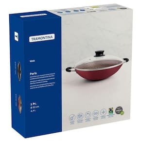 A wok Tramontina Paris é um item indispensável para quem busca praticidade e estilo na cozinha. Produzida em alumínio com revestimento interno e externo em antiaderente Starflon Max na cor vermelha, esta wok proporciona um cozimento rápido e uniforme dos alimentos, além de evitar que grudem em sua superfície. Acompanha uma tampa de vidro temperado, com saída de vapor e borda de aço inox, garantindo um cozimento perfeito.