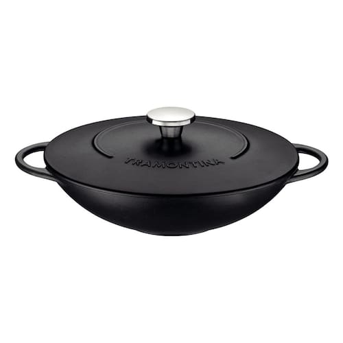 Preparar aquelas iscas de carne com sabor caseiro inesquecível fica muito mais fácil com a wok Tramontina Trento em ferro esmaltado com revestimento interno em antiaderente Starflon Excellent 32 centímetros 5 litros. Com ela, você cozinha os alimentos de maneira rápida e uniforme e ainda evita que eles grudem em sua superfície, pois é produzida em ferro fundido esmaltado com revestimento interno em antiaderente Starflon Excellent. É a clássica panela de ferro com a praticidade do antiaderente. Ela ainda é uma wok muito versátil, pois pode ir em diversos tipos de fogão e ir ao forno para gratinar suas receitas!