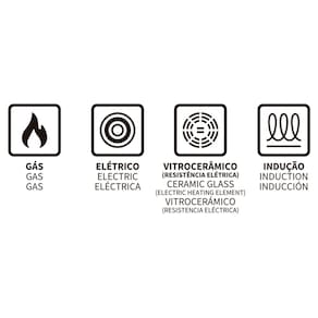 Pode ser utilizada nos fogões: elétrico, gás, indução e vitrocerâmico.