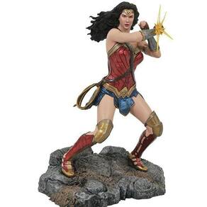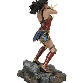 Com aproximadamente 23 centímetros de altura, esta escultura de Diana Prince mostra suas balas defletindo com suas pulseiras amazônicas e apresenta a imagem da atriz Gal Gadot.
