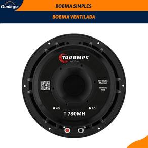 O alto-falante T 780 MH da Taramps oferece potência e clareza sonora para sistemas de som profissionais ou automotivos. Ele possui 390 WRMS e 780 Watts de potência musical. Este modelo de 10 polegadas está disponível nas versões de 8 Ohms. Seu design entrega timbres limpos e alta eficiência acústica, com destaque para médios graves e médio agudos.