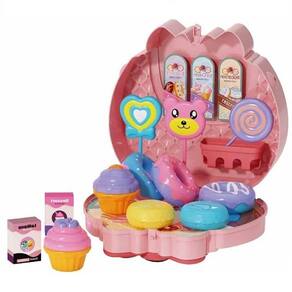A Bolsa Fashion Workshop Jr é uma linda bolsa com alças acompanhada de diversos acessórios de docinhos para brincar de ter sua própria doceria e atender os clientes.