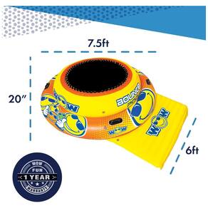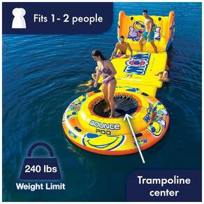 Bouncer inflável para lago O WOW Bounce Pod é ideal para 1 2 pessoas, 240lbs. 108kg. capacidade máxima. Mantenha o nível de diversão o dia todo com este segurança. BOUNCE POD O Bounce Pod é feito de PVC de grau especial resistente para aguentar o sol quente. Grande plataforma de embarque flutuante com alças de embarque moldadas incluídas. LAKE TUBE Este segurança é ótimo para as crianças se divertirem pulando, mas também pode ser como uma ilha particular para relaxar ou brincar no meio do seu corpo de água favorito Marca: Não Informado