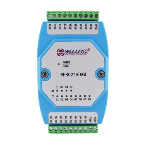 Este módulo usa o padrão de comunicação RS-485 MODBUS RTU, podendo ser configurado com uso de seu software. Possui LED indicador de status para entrada e saída, seu circuito de comunicação é projetado para proteger contra raios e interferências.