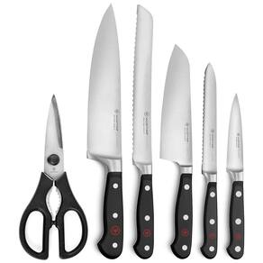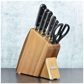 Wu Conjunto de Facas em Aço Inoxidável com Afiador Embutido e Bloco de Acácia 7 Peças, WSTHOF, Preto