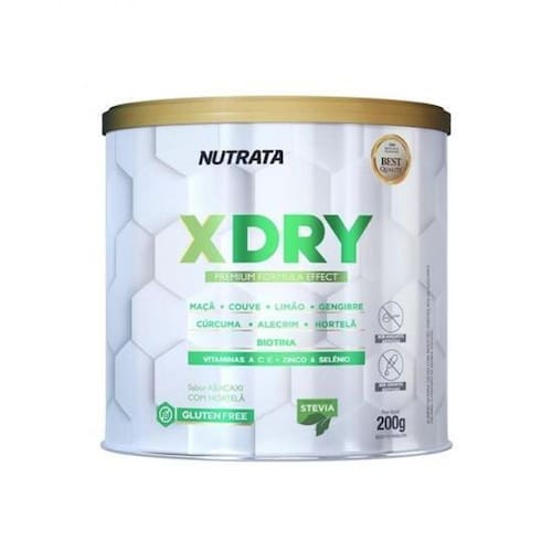 X-dry 200g - NUTRATA X Dry é um composto em pó para preparo de suco antioxidante. À base de couve, polpa de maçã, limão, gengibre, cúrcuma, alecrim e hortelã, com vitaminas e minerais para fazer parte do seu dia a dia de forma rápida e saborosa. Possui uma fórmula exclusiva com ingredientes naturais que contribui para uma vida mais saudável. X Dry é adoçado com Stévia, sem adoçantes artificiais e sem corantes artificiais Benefícios: - VITAMINA A Contribui para a manutenção da pele;- VITAMINAS C e E São antioxidantes que auxiliam na proteção dos danos causados pelos radicais livres; A vitamina C auxilia no metabolismo energético e no metabolismo de proteínas e gorduras;- BIOTINA Auxilia no metabolismo energético; contribui para a manutenção do cabelo e da pele;- SELÊNIO e ZINCO Antioxidantes que auxiliam na proteção dos danos causados pelos radicais livres. O zinco contribui para a manutenção do cabelo, da pele e das unhas.