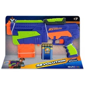 Características: - Marca: Multikids - Modelo: Revolution com 8 Dardos - Idade Recomendada: +7 anos - Composição do Material: Plástico e Espuma