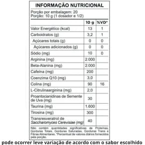 Energia Explosiva: Aumenta significativamente os níveis de energia. Melhora no Foco: Promove uma concentração mental intensa. Maior Resistência: Reduz a fadiga e prolonga a capacidade de treino. Aumento da Força: Potencializa a força muscular para levantamentos mais pesados. Melhor Vascularização: Promove um fluxo sanguíneo mais eficiente. Sugestão de Uso: