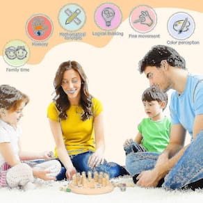 Alta qualidadeO xadrez de memória é feito de material de madeira seguro e tinta à base de água não tóxica, bonita e compacta, com cor brilhante. O bastão de madeira é pintado de forma limpa e tem um revestimento de superfície lisa que não machucará facilmente as mãos do seu filho, para que você possa usá-lo com confiança. Várias maneiras de jogarEstas imagens mostram três maneiras diferentes de jogar, o que significa que você pode jogar o jogo com seus filhos ou amigos de maneiras diferentes, e você pode até mesmo definir suas próprias regras para atender aos requisitos do jogo. Este grande jogo de tabuleiro familiar auxilia e melhora o jogo de aprendizagem mão-olho das crianças, exercita e melhora a memória, melhora a capacidade de observar detalhes e também evita a perda de memória em idosos. [Bom presente] Este xadrez de memória é um brinquedo que educa a capacidade cognitiva de cores, e também é um bom jogo interativo pai-filho. Super bom presente para as crianças. Os jogos podem ser jogados com toda a família e promover o vínculo entre pais e filhos. Grande diversão para crianças e adultos. [Detalhes do pacote] 1 base redonda de madeira com 24 buracos, 1 cubo de madeira multicolorido, 24 lápis coloridos de madeira (4x branco, 4x verde, 4x amarelo, 4x azul, 4x preto, 4x vermelho).