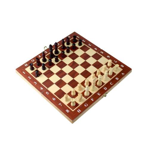 Tabuleiro de xadrez completo com 32 peças em madeira O tabuleiro é dobrável e guarda todas as peças quando não em uso. Peças nas cores marrom e marfim não são pretas e brancas . Dimensão do tabuleiro 29,5 x 29,5 cm. fechado 29,5 x 14,7 x 4 cm Altura do Rei 5,4 cm, altura do Peão 2,6 cm. As demais peças possuem tamanhos intermediários. Base das peças maiores 1,8 cm de diâmetro. Este produto é destinado ao público adulto, mantenha longe do alcance de crianças. Ean: 7899670806042