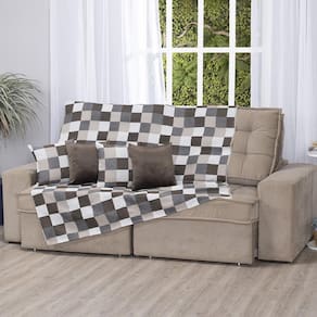 Xale de Jacquard Manta de Sofá Poltrona Cama 2,20m x 1,50m Cor: Tabuleiro avelã Os xales, ou mantas, são itens coringa na decoração. A grande variedade de cores, estampas e texturas te permite mudar a cara de qualquer ambiente de forma rápida e gastando pouco. Pode ser em sofás, poltronas, cadeiras, dentro de cestos ou até como peseira pra compor a roupa de cama. Contém na embalagem: 1 xale 2,20m comp. X 1,50m larg. Tecido e composição: Jacquard 59% algodão/41% poliéster - Acabamento em bainha no comprimento e desfiado na largura - Foto ilustrativa, tonalidade da cor pode variar um pouco no produto real Produtos fabricados em Ibitinga-SP, a Capital Nacional do Bordado e do Enxoval. Marca: Não Informado Ean: 7793725436270