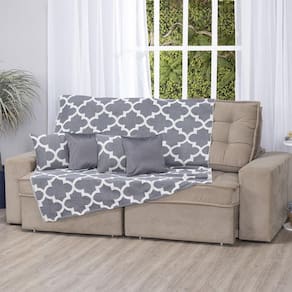 Xale de Jacquard Manta de Sofá Poltrona Cama 2,20m x 1,50m Cor: Medalhão cinza Os xales, ou mantas, são itens coringa na decoração. A grande variedade de cores, estampas e texturas te permite mudar a cara de qualquer ambiente de forma rápida e gastando pouco. Pode ser em sofás, poltronas, cadeiras, dentro de cestos ou até como peseira pra compor a roupa de cama. Contém na embalagem: 1 xale 2,20m comp. X 1,50m larg. Tecido e composição: Jacquard 59% algodão/41% poliéster - Acabamento em bainha no comprimento e desfiado na largura - Foto ilustrativa, tonalidade da cor pode variar um pouco no produto real Produtos fabricados em Ibitinga-SP, a Capital Nacional do Bordado e do Enxoval.