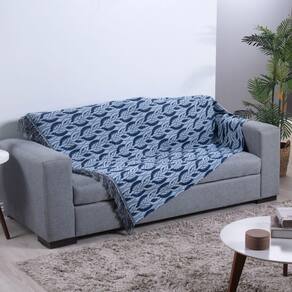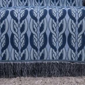Xale Para Sofá Com Franja Luxor 1 Peça 2,10m X 1,35m 60% Algodão - 40% Poliéster Tecido Jacquard Cor:azul Corrente