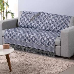 Xale Para Sofá Com Franja Luxor 1 Peça 2,10m X 1,35m 60% Algodão - 40% Poliéster Tecido Jacquard Cor:azul Palmeira