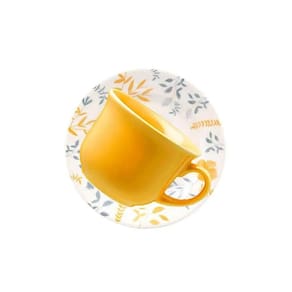 Características do Produto: Material: Cerâmica Marca: Biona Fabricado: Oxford Cor: Amarelo Quantidade de Peças: 1 xícara e 1 pires Capacidade: 180 ml Altura da Xícara: 7 cm Diâmetro da Xícara: 9 cm Diâmetro do Pires: 14 cm Decoração: Estampado Uso: Resistente a micro-ondas e lava-louças Imagem meramente ilustrativas. Recomendações de uso: Ao usar o produto pela primeira vez, lavar bem a peça com esponja macia e sabão neutro; Lavar as peças utilizando esponja macia e sabão neutro; Não levar as peças ao forno; Não submeter as peças a chama direta Marca: Não Informado Ean: 7891361351831