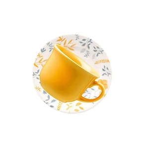 Composto por xícara e pires decorados, este conjunto traz um design exclusivo com estampa inspirada no pássaro Bem-te-vi, ideal para dar um toque especial à sua mesa.