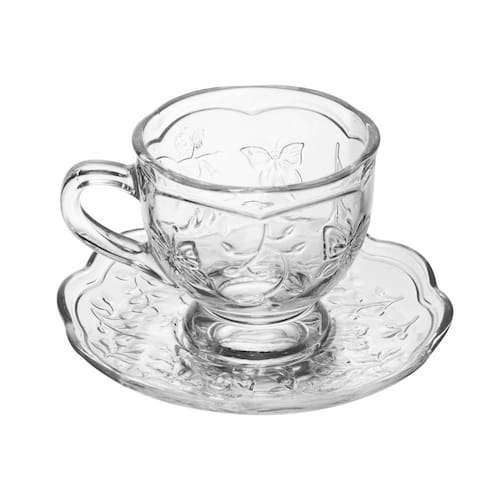 Xícara de Chá com Pires New Butterfly 180ml Cristal Ecológico - Lyor