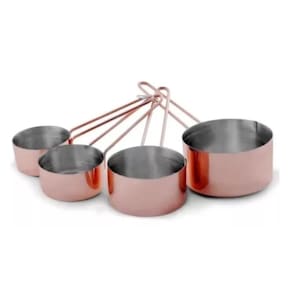 Xicara e colher medidor 08 tamanho inox bronze rose mimo Especificações: - contém 4 xícaras de medição: 250 ml xícara , 125 ml 1/2 xícara , 80 ml 1/3 xícara , 60 ml 1/4 xícara . - fabricadas em aço inox - recomendado para a medição de ingredientes durante a preparação de receitas - ou doméstico - marca: mimo style Especificações: Dimensões cxaxl : 13,1 x 4 x 1,8 cm Peso: 58 g Capacidade: 15 ml / 5 ml /2,5 ml / 1,25 ml Material: inox Conteúdo da embalagem: Colheres medidoras 4 peças inox bronze