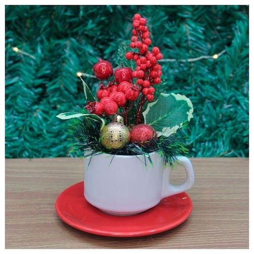 ;1 xícara com pires com enfeite natalino