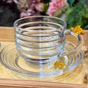 Xícara de Chá com Pires Little Bee Abelha Colmeia Mel Cristal Ecológico 200ml Lyor