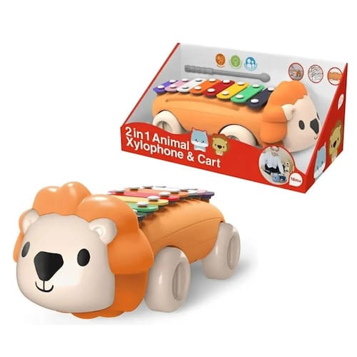O Xilofone Amiguinhos da Selva apresenta um design encantador de Leão e cores vibrantes. Este Xilofone é um instrumento educacional que estimula o amor pela música, habilidades motoras finas e coordenação. Feito com precisão, este xilofone possui oito teclas de metal coloridas que produzem notas nítidas e claras. Equipado com rodas duráveis e um cordão de puxar, este xilofone é o companheiro musical ideal para seu filho. Este brinquedo é o presente perfeito para meninos e meninas a partir de 18 meses de idade!
