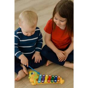 Possui 8 teclas coloridas que emitem sons diferentes, tornando o aprendizado musical mais fácil e divertido.