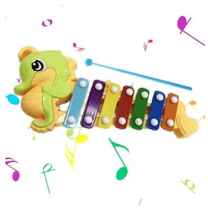 Divertido e educativo, este xilofone infantil em formato de cavalo-marinho é perfeito para estimular a criatividade e a coordenação motora das crianças.