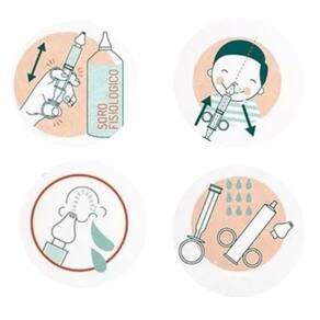 Lavagem: Com o bebê seguro, introduza delicadamente a ponteira macia em uma das narinas e pressione suavemente o êmbolo para iniciar a lavagem.