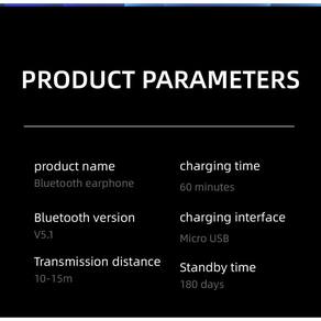 Especificações técnica: Modo: TWS Tensão de trabalho: 3. 3 V-4, 2 volts Capacidade da bateria: 40mA / 3000mA Tempo de carregamento: cerca de 1 horas Tempo de uso: 5 a 6 horas Tempo de espera: cerca de 60 horas Versão Bluetooth: v5.1 + EDR Faixa de transmissão: 45Hz-20000Hz Sensibilidade: 92 dB Distância de comunicação: distância efetiva de 15 metros Cor do produto: preto Peso do produto: cerca de 100g Suporte: a2dp/avrcp/avdtp/avctp/hfp/gavdp Música surround 3d de alta fidelidade Mini na orelha, confortável de usar Display de bateria digital Suporte última e próxima música Suporte ajustar o volume Fácil de transportar.