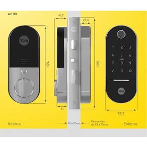 A Fechadura Digital Yale Lia oferece segurança e praticidade para sua casa. Com design moderno em preto fosco, permite o controle da porta via aplicativo, senha ou chave digital. O kit de conectividade possibilita integração com dispositivos inteligentes, garantindo mais comodidade no dia a dia.