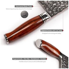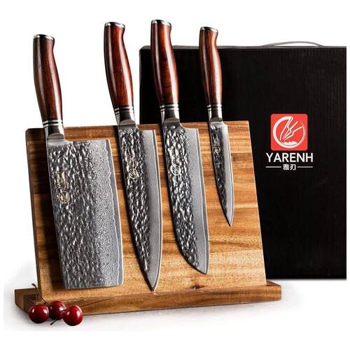 Desempenho de alto custo A faca Yarenh é feita com os melhores materiais do Japão e da Europa na mundialmente famosa Cutter City Yangjiang China. Ao usar materiais premium e um processo maduro de baixo custo, oferece aos clientes a faca de cozinha de aço damasco da mais alta qualidade a um preço atraente, proporcionando lhes uma experiência de corte sofisticada. Lâmina de Aço Damasco A lâmina é feita de 73 camadas de aço Damasco o aço de alto carbono 10Cr15CoMoV é selecionado para o núcleo de aço cuja dureza é estável a 60 2HRC, mostrando sua excelência em alta nitidez e durabilidade. Cabo para madeira Dalbergia a dalbergia é uma madeira maciça natural. Devido às diferentes estações de corte, localização da madeira e ambiente de crescimento, existem certas diferenças na cor e na textura do cabo, o que é um fenômeno normal e não pode ser evitado Marca: Não Informado