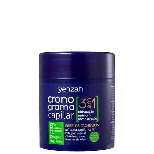 A Máscara Cronograma Capilar 3 em 1, de Yenzah, reúne colágeno, óleo de abacate e proteína de trigo que realizam um tratamento completo específico para os cachos, sem a necessidade de alternar a cada semana. Além disso, a fórmula é vegana, livre de parabenos, sal e petrolatos.