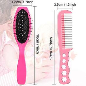 Ergonômico : A alça ergonômica permite que você desembaraçar e estilo fácil com conforto. Mantém bonecas Arrumadas: Pegue um punhado de cabelo e pente-lo da área atada. Uma vez que o nó é removido, penteá-lo da cabeça para a cauda. Especificações: Tamanho: como imagem mostrada Cor: rosa Quantidade: 2 pcs O pacote inclui: 1 x escova de boneca rosa 1 x pente de boneca rosa