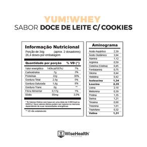 Yum Whey Protein Concentrado Tamanho: 900g Sabor: Doce de Leite com Cookies Yum Whey Protein ConcentradoWhey Protein 100% WHEY CONCENTRADOA qualidade de sempre numa versão ainda mais saborosa. - Alta concentração proteica- Rico em BCAA YES, COOKIESTodos os sabores contam com pedacinhos crocantes de cookiesProduto dispensado de registro conforme RDC ANVISA 27/2010 Marca: Wisehealth