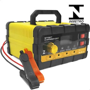 INTELIGENTE: Controlado por microprocessador, detecta a quantidade de carga necessária para a bateria, enviando apenas o necessário e interrompendo o envio de carga quando atinge 100%*.