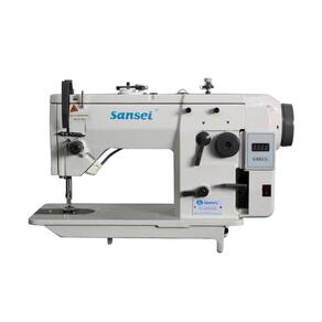 Máquina Zig-zag Semi-industrial Sansei SA-G20U93. Zig-zag com 2 pontos, lubrificação automática por bomba de óleo. Voltagem: Bivolt chaveado (atrás do motor possui uma chave seletora de voltagem). COMO É ENVIADO O PRODUTO: A máquina é enviada em 02 volumes. Volume 01 - Conteúdo: - Cabeçote completo; - Porta fios; - Acessórios Diversos; - Caixa medindo 0,26 x 0,52 x 0,59 = 0,080m3; Volume 02 - Conteúdo: Estante (mesa) desmontada composta por; - Tampo de madeira revestido em fórmica impermeável c/gaveta; - Pé de ferro pintado por imersão.