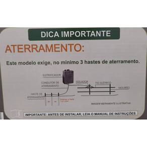 Com regulagem de cadência; Possui C.I. de proteção contra danos do circuito, evitando qualquer possibilidade do eletrificador enviar tensão alternada para cerca Desviador interno de raios de baixa intensidade; Exige, no mínimo, três hastes para aterramento.