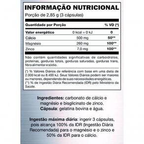 A porção de 3 cápsulas deste produto alcança 100% da IDR (Ingestão Diária Recomendada) para o magnésio e o zinco e 50% da IDR para o cálcio.